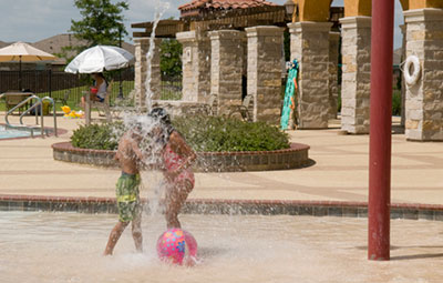 Rolling hills and shimmering lakes create an idyllic backdrop for life within Tuscan Lakes. Neighbors gather for fun at the Cypress Point Recreation Center, a community hub for Mommy and Me play dates, poolside weekends and splash pad revelry. The resort-style pool caters to adults and children alike, with active play zones, lap swimming and areas for relaxation. The zero-entry splash pad is a favorite among young residents who delight in the pop-up fountains and other spray elements. With nearly 5,300-square-feet of water play, the pool wraps around a large circular berm landscaped with Italian cypress trees.